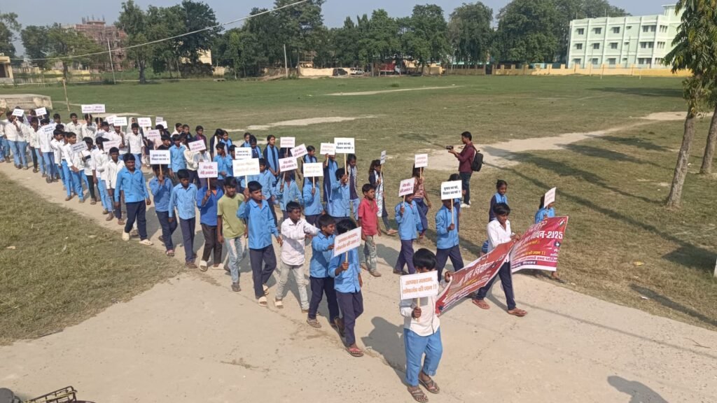 शिवहर-आगामी बिहार विधानसभा आम निर्वाचन 2025 के अवसर पर शिवहर स्थित श्री नवाब सिंह उच्च विद्यालय के प्रांगण में स्कूली बच्चों ने मतदान के महत्व को दर्शाने के लिए रैली निकाली। बच्चों ने विभिन्न मतदान संबंधित स्लोगन द्वारा जिला वासियों से मतदान करने का अनुरोध किया। विद्यालय में उपस्थित सभी बच्चों ने यह संकल्प लिया कि वे अपने माता-पिता एवं समाज के अन्य वयस्कों से मतदान का महत्व समझाते हुए शत प्रतिशत मतदान के लिए प्रेरित करेंगे। रैली में छात्र-छात्राओं ने विभिन्न प्रकार के नारे यथा पहले मतदान, फिर जलपान,हम अपना कर्तव्य निभाएंगे मम्मी-पापा से मतदान कराएंगे* से लोगों को राष्ट्र निर्माण में मतदान का महत्व बतलाया। मौके पर वरीय उप समाहर्ता सुश्री दीक्षा भगत, जिला प्रोग्राम पदाधिकारी श्रीमती किसलय शर्मा, जिला मिशन समन्वयक श्री प्रशांत नागमणि, जिला समन्वयक श्री अवनीश पाण्डेय सहित अन्य पदाधिकारी, कर्मी एवं शिक्षक मौजूद थे।