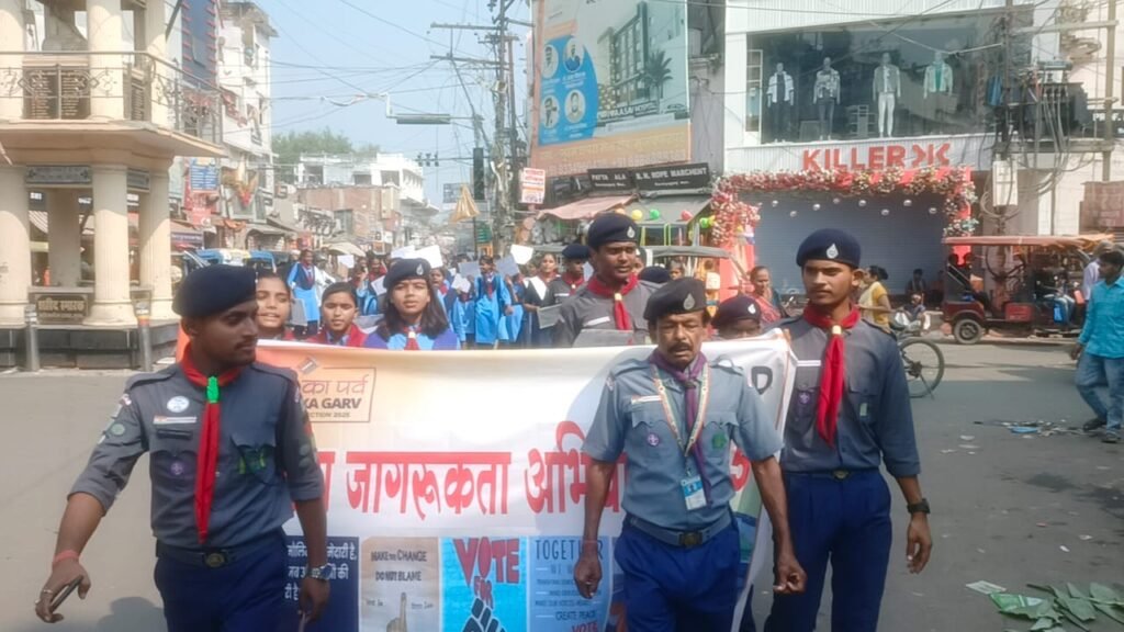 भारत स्काउट और गाइड मुजफ्फरपुर के जिला सचिव दिलीप कुमार के नेतृत्व में मतदाता जागरूकता रैली स्थानीय समाहरणालय स्थित भारत माता नमन स्थल से निकाली गई जो कंपनी बाग, टावर, सुतापट्टी होते हुए पुनः कंपनी बाग के रास्ते खुदीराम बोस स्टेडियम में जा कर समाप्त हुआ ।