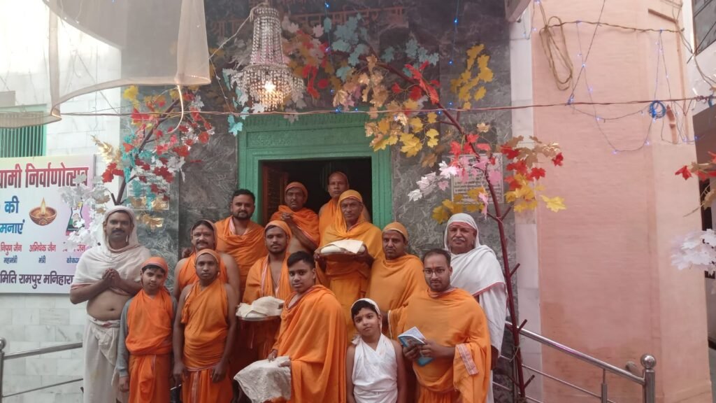मंगलवार को नगर के जैन मंदिर को भव्य रूप से सजाया गया। प्रातः मंदिर में श्री महावीर भगवान का अभिषेक और शांतिधारा की गई। शांतिधारा करने का सौभाग्य अनुज जैन और आरव जैन को प्राप्त हुआ। प्रातः से ही मंदिर में श्रद्धालुओं की भारी भीड़ रही। मंदिर की परिक्रमा की गई। महावीर प्रभु की पूजन के बाद 11 किलो का निर्वाण लड्डू बैंड बाजे के साथ चढ़ाया गया। मुख्य निर्वाण लाडू चढ़ाने का सौभाग्य कौशल प्रसाद जैन प्रदीप कुमार जैन के परिवार को प्राप्त हुआ। जैन मान्यता के अनुसार कार्तिक कृष्ण अमावस्या के दिन प्रातः काल में जैन धर्म के अंतिम तीर्थंकर भगवान महावीर स्वामी को बिहार राज्य के पावापुर सिद्क्षेत्र के पदम सरोवर स्थान से मोक्ष प्राप्त हुआ था। शाम के समय महावीर भगवान की सामूहिक आरती की गई। इस दौरान जैन समाज के प्रधान मनोज जैन, महामंत्री निपुण जैन, शशांक जैन, अमित जैन, अतुल जैन, प्रशांत जैन, पुष्पेन्द्र जैन, अंशुल जैन, सुधीर जैन, विद्यासागर जैन, अभिषेक जैन, प्रियंक जैन, शुभम जैन, आर्जव जैन, अनुराग जैन, विशु जैन, संजय जैन, अन्नू जैन सहित समाज के महिला पुरुष मौजूद रहे।