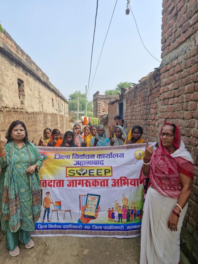 आज जहानाबाद जिला अंतर्गत *प्रखंड मोदनगंज** क्षेत्र के पंचायत बंधुगंज, सरिस्टाबाद , गंधार, कोकरी, देवरा ,जैतीपुर एवं बुथ संख्या 71,89,137,138 में *प्रखंड मखदुमपुर* क्षेत्र के पंचायत डकरा, पश्चिमी सरेन , में *प्रखंड जहानाबाद* क्षेत्र के पंचायत कसई, गोडीहा ,आदमपुर और *प्रखंड हुलासगंज* क्षेत्र के पंचायत दावथु , मुरगांव बूथ संख्या 223, चीरी बूथ संख्या233, *प्रखंड काको* क्षेत्र के ग्राम अमथुआ में सेविका ,सहायिका, टोला सेवक ,विकास मित्र एवं जीविका दीदीयो के द्वारा डोर टू डोर प्रोग्राम किया गया और जहानाबाद के लोगों को यह भी बताया गया कि एपिक के अलावा 12 अलग दस्तावेजों को इस्तेमाल कर वह अपने मतदान केंद्र पर जाकर अपना वोट दे सकते हैं, और लोकतंत्र के इस महापर्व में अपनी सहभागिता प्रदान कर सकते हैं।