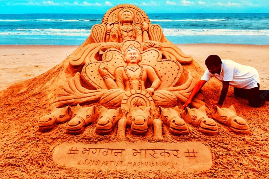 *सैंड आर्टिस्ट मधुरेंद्र ने रेत पर भगवान भास्कर का बनायी अलौकिक शिल्पी, बना छठ महापर्व का सबसे बड़ा आकर्षण*