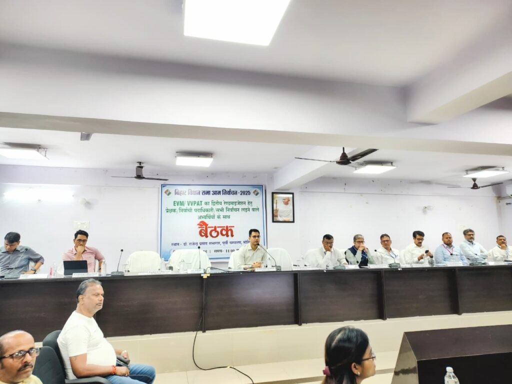 बिहार विधानसभा आम चुनाव -2025 को स्वच्छ, निष्पक्ष एवं पारदर्शी रूप से संपन्न कराने के लिए भारत निर्वाचन आयोग नई दिल्ली के द्वारा नियुक्त सामान्य प्रेक्षकगण, चुनाव लड़ने वाले अभ्यर्थी तथा राजनैतिक दलों के प्रतिनिधियों के समक्ष ईवीएम / वीवीपैट का विधानसभा क्षेत्र के मतदान केंद्र वार रेंडमाइजेशन किया गया। पूर्वी चंपारण समाहरणालय मोतिहारी स्थित डॉ राजेंद्र प्रसाद सभागार में ईवीएम/वीवीपैट का द्वितीय रेंडमाईजेशन किया गया। इस अवसर पर जिला निर्वाचन पदाधिकारी-सह-जिला पदाधिकारी सौरभ जोरवाल एवं  भारत निर्वाचन आयोग द्वारा नियुक्त पुलिस प्रेक्षक  राघवेंद्र सुहासा, सामान्य प्रेक्षक  10-रक्सौल विधानसभा क्षेत्र  मयंक अग्रवाल,11-सुगौली विधानसभा क्षेत्र हनीश छाबड़ा, 12-नरकटिया विधानसभा क्षेत्र राजेंद्र कुमार,13- हरसिद्धि विधानसभा क्षेत्र मोहित बूंदास, 14-गोविंदगंज विधानसभा क्षेत्र शशांक प्रताप सिंह,15-केसरिया विधानसभा क्षेत्र पी बी नूह, 16- कल्याणपुर विधानसभा क्षेत्र के श्री जी एस पांडा दास,17-पिपरा विधानसभा क्षेत्र  के एस नायडू, 18- मधुबन विधानसभा क्षेत्र में अहमद इकबाल, 19-मोतिहारी विधानसभा क्षेत्र विनोद आर राव ,20- चिरैया विधानसभा क्षेत्र  डी मुरलीधर रेड्डी, 21-ढाका विधानसभा क्षेत्र  नरेंद्र कुमार शाह सहित जिला के सभी 12 विधानसभा निर्वाचन क्षेत्र के निर्वाची पदाधिकारी, उप निर्वाचन पदाधिकारी पूर्वी चंपारण मोतिहारी, सभी अभ्यर्थी/ उनके निर्वाचन प्रतिनिधि तथा राजनैतिक दलों के प्रतिनिधि उपस्थित रहे।
