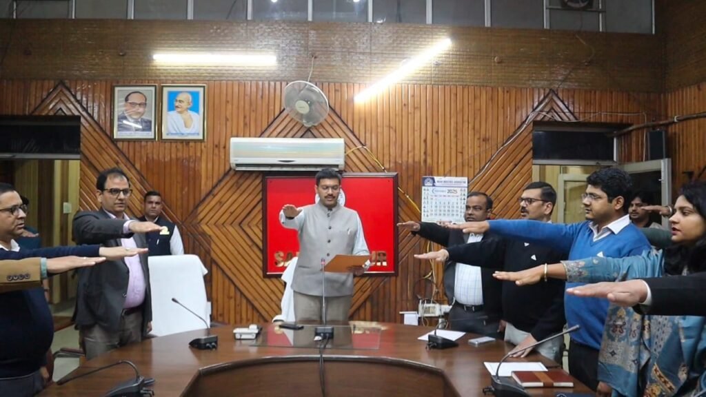 संविधान दिवस के अवसर पर सहारनपुर मंडल में गुरुवार को विभिन्न प्रशासनिक कार्यालयों और पुलिस इकाइयों में शपथ ग्रहण समारोह आयोजित किए गए। आयुक्त कार्यालय में मण्डलायुक्त डॉ. रूपेश कुमार ने अधिकारियों-कर्मचारियों को संविधान की प्रस्तावना पर आधारित शपथ दिलाई, जबकि कलेक्ट्रेट सभागार में जिलाधिकारी मनीष बंसल ने समस्त अधिकारियों के साथ शपथ ग्रहण किया।वरिष्ठ पुलिस अधीक्षक आशीष तिवारी के नेतृत्व में सहारनपुर पुलिस द्वारा भी संविधान दिवस पर शपथ ग्रहण की गई है।इस दौरान देश के लोकतांत्रिक ढांचे, नागरिक अधिकारों और कर्तव्यों के महत्व पर विस्तार से प्रकाश डाला गया।मण्डलायुक्त डॉ. रूपेश कुमार ने कहा कि 26 नवंबर भारतीय संविधान को अंगीकृत किए जाने का गौरवपूर्ण दिन है। संविधान सभी धर्मों, समाजों और वर्गों को समान अधिकार प्रदान करता है। उन्होंने बताया कि “हमारा संविधान, हमारा स्वाभिमान” विषय पर वर्षभर विभिन्न जागरूकता कार्यक्रम आयोजित किए जाएंगे, जिनमें संविधान में निहित मूल्यों और संवैधानिक लोकाचार को जन-जन तक पहुंचाने का लक्ष्य रहेगा।