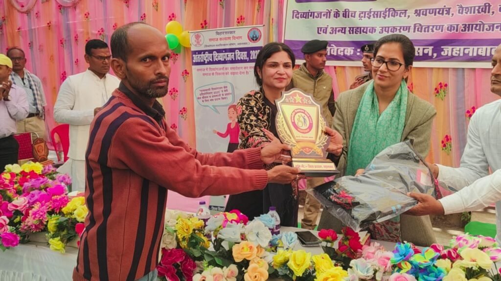 जहानाबाद -अंतर्राष्ट्रीय दिव्यांगजन दिवस के अवसर पर को खेल भवन, में जिला पदाधिकारी अलंकर्ता पाण्डेय की उपस्थिति में एक विशेष समारोह का आयोजन किया गया। इस कार्यक्रम में दिव्यांगजनों को सशक्त बनाने और उनके खेल कौशल को सम्मानित करने के लिए आयोजन किया गया ।