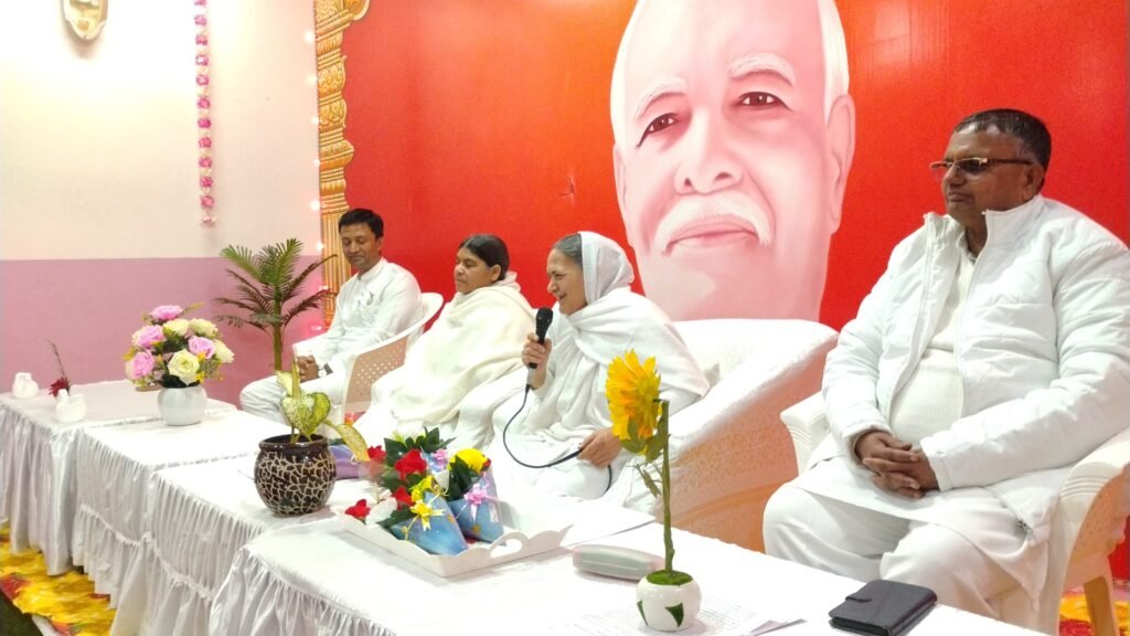 कार्यक्रम में सेवा केंद्र प्रभारी बी.के. संतोष दीदी ने अतिथियों को बुके देकर स्वागत किया।