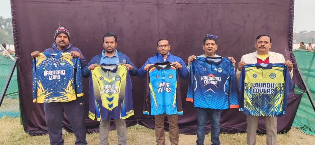कल आती उच्च विद्यालय, कदीरगंज के मैदान में किया जाएगा । इस आयोजन में नवादा जिले के युवा खिलाड़ियों को जौहर दिखाने का सुनहरा अवसर दिया जा रहा है। सभी पांच टीमों का गठन ट्रायल के माध्यम से किया गया है एवं सभी टीमों में 16-16 खिलाड़ियों को रखा गया है, इंस्ट्रूमेंट की सभी पांच टीमें ( नवादा बैरियर्स,होंडा हीटर्स, लौंध लवर्स,नारदीगंज लायंस कादिरगंज कोब्रास ) एक दूसरे से भिड़ेगी तथा प्वाइंट्स टेबल में टॉप पर रहने वाली दो टीमें फाइनल खेलेगी। इसी क्रम में आज खिलाड़ियों के ड्रेस का अनावरण जिला क्रिकेट संघ के अध्यक्ष राजेश कुमार मुरारी, सचिव राकेश कुमार , बीसीए मैनेजर मनीष आनंद, सुभाष प्रसाद,बबलू वर्मा , के द्वारा किया गया।