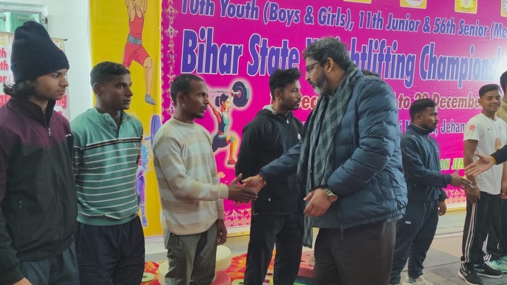 जहानाबाद -जिले के खेल भवन में राज्य स्तरीय, गेम्स भारोत्तोलन 2025 का शुभारंभ अरवल विधायक मनोज कुमार,घोषी विधायक रितुराज कुमार एवं जिला पदाधिकारी अलंकृता पाण्डेय ने संयुक्त रूप से द्बीप प्रज्ज्वलित कर किया।