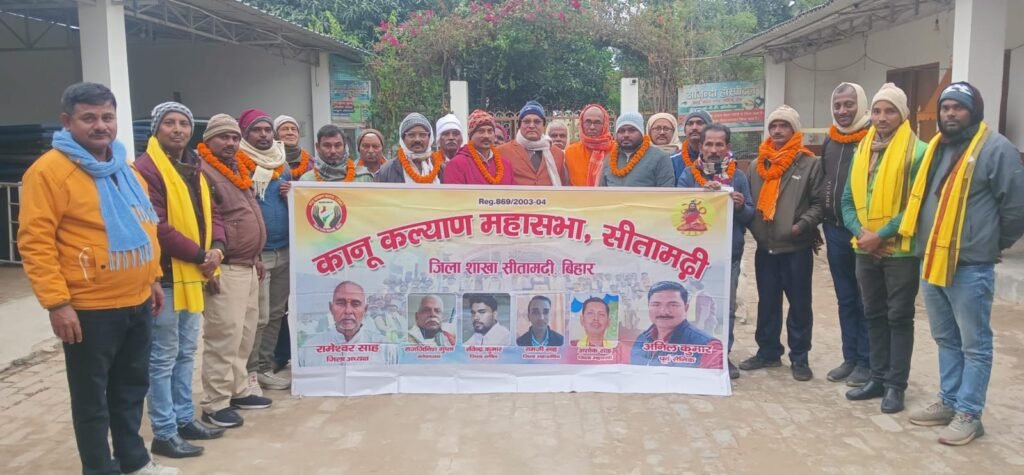 मेजरगंज आनंदी हॉस्पिटल के प्रांगण में कानू कल्याण महासभा सीतामढ़ी के जिलाध्यक्ष रामेश्वर साह के अध्यक्षता में एक बैठक का आयोजन किया गया जिसमें प्रखंड के विभिन्न पंचायतों से सैकड़ों की संख्या में लोग शामिल हुए कार्यक्रम का संचालन पूर्व सैनिक अनिल कुमार द्वारा किया गया सर्वप्रथम उपस्थित लोगों के तरफ से बैठक का संयोजन कर रहे डॉ बृजकिशोर साह ने जिला टीम के सभी पदाधिकारी को फूलमाला पहनाते हुए अंगवस्त्र भेंट कर स्वागत सम्मान किया उपस्थित लोगों ने समाजिक एकता एकजुटता पर बल देते हुए विभिन्न मुद्दों पर चर्चा की सर्वसहमति से प्रखंड अध्यक्ष धीरज कुमार उपाध्यक्ष छोटेलाल कुमार महामंत्री रामबालक साह सचिव हरिकिशोर प्रसाद व उदय कुमार को मनोनीत किया गया वहीं संरक्षक डॉ बृजकिशोर साह राजेन्द्र साह खोभारी साह रामेश्वर साह बिनोद साह को मनोनीत किया गया अध्यक्ष एवं जिला टीम द्वारा सभी नवनियुक्त पदाधिकारियों का फूलमाला पहना कर स्वागत सम्मान किया गया अध्यक्ष ने नवनियुक्त लोगों से समाजिक सहयोग एकजुटता बनाए रखने का अपील करते हुए धन्यवाद किया बैठक में जिला से रामजिनिश गुप्ता रामजी साह रविंद्र कुमार अशोक साह स्थानीय मनोज कुमार राजकुमार साह राम अयोध्या साह विमल साह राजा कुमार समेत सैकड़ों की संख्या में लोग उपस्थित थे।