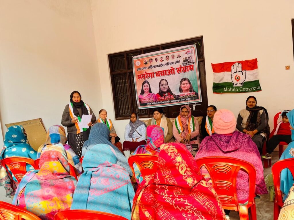 क्षेत्र के गांव नन्दपुर में पंकज सैनी के निवास पर कांग्रेस की राष्ट्रीय अध्यक्ष अलका लाम्बा व प्रदेश अध्यक्ष भारती त्यागी के निर्देश पर एवं जिलाध्यक्ष श्वेता सैनी के नेतृत्व में आयोजित बैठक में भाजपा द्वारा मनरेगा योजना को बंद किये जाने पर रोष प्रकट किया गया। इस अवसर पर जिलाध्यक्ष श्वेता सैनी ने कहा कि गरीबों के हित में कांग्रेस द्वारा शुरू की गई योजना को भाजपा सरकार ने बन्द करके गरीब लोगों के समक्ष रोजगार का संकट पैदा कर दिया है को किसी भी सूरत में बर्दाश्त नहीं किया जायेगा। उन्होंने कहा कि ग्रामीण हितों एवं जनकल्याणकारी योजनाओं के समर्थन में महिला कांग्रेस हर समय संघर्ष के लिए तैयार रहेगी। इस दौरान सीता भारद्वाज, अंदलिब, इरम, रीता बब्बर, उपमा सिंह, रेखा धीमान, शर्मिष्ठा, रुखसार, प्रीती, राखी, पूजा आदि महिला कार्यकर्ता मौजूद रही।