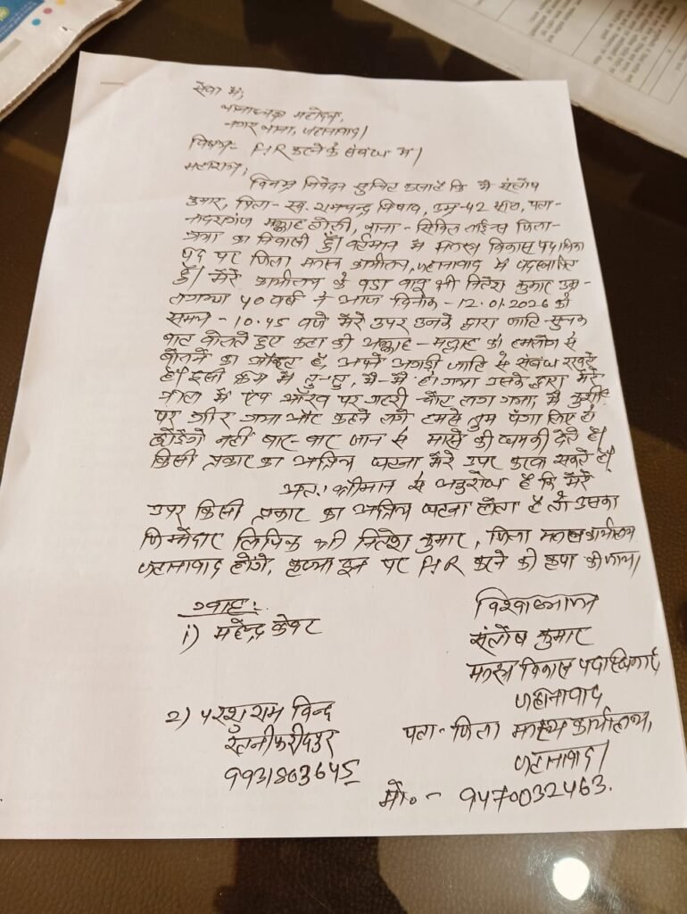 घायल मत्स्य ने नगर थाना मे प्राथमिकी दर्ज हेतु दिया लिखित आवेदन।