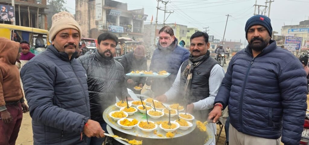 कस्बे में दान-पुण्य और सद्भावना के पावन पर्व मकर संक्रांति के अवसर पर श्री राम सेवा ट्रस्ट द्वारा खिचड़ी वितरण कार्यक्रम आयोजित कर मानवता की सेवा का संदेश दिया