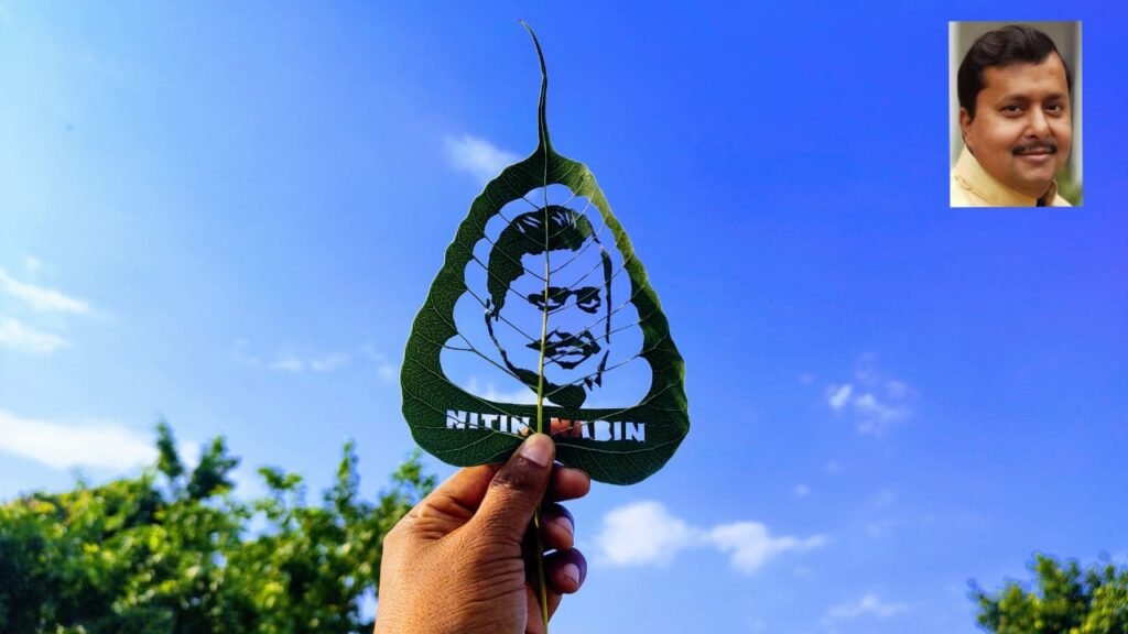 इसी कड़ी में भारत के चर्चित इंटरनेशनल लीफ आर्टिस्ट मधुरेंद्र कुमार ने नितिन नबीन को नए पद पर नियुक्ति की खुशी में 3 घंटों के कठिन परिश्रम के बाद केवल 3 सेमी लंबे पीपल के हरे पत्तों पर उनकी शानदार तस्वीर बनाकर रचनात्मक अंदाज में बधाई पेश की है। इस अनोखे कला रूप ने सोशल मीडिया पर सुर्खियाँ बटोरी है।