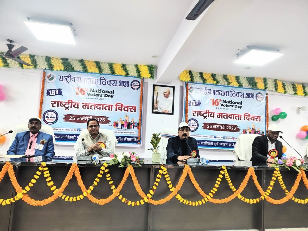 पूर्वी चंपारण अपर समाहर्ता मुकेश कुमार सिन्हा ने कार्यक्रम को संबोधित करते हुए कहा कि भारत में लोकतंत्र की जड़े बहुत मजबूत है। ऐसा यहां के मतदाताओं की बदौलत है। उन्होंने कहा कि देश के मतदाता ही देश के भाग्य विधाता हैं।