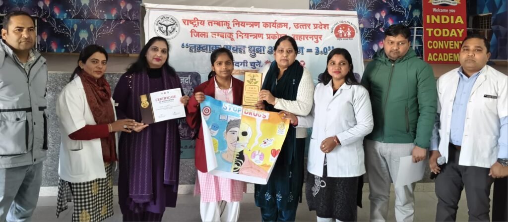 राष्ट्रीय तंबाकू नियंत्रण कार्यक्रम के अंतर्गत गुरुवार को रामपुर मनिहारान क्षेत्र में तंबाकू मुक्त युवा अभियान का आयोजन किया गया। यह कार्यक्रम मुख्य चिकित्सा अधिकारी के दिशा-निर्देशों के अनुसार सामुदायिक स्वास्थ्य केंद्र (सीएचसी) रामपुर मनिहारान द्वारा संचालित किया गया। अभियान के तहत इंडिया टूडे कोवेंट एकेडमी में जागरूकता कार्यक्रम आयोजित किए गए, जिसमें चिकित्सकों व स्वास्थ्य कर्मियों ने छात्रों को तंबाकू उत्पादों के सेवन से होने वाले दुष्प्रभावों की जानकारी दी। इस दौरान पोस्टर पेंटिंग, निबंध लेखन एवं शपथ ग्रहण जैसे कार्यक्रमों का आयोजन कर विद्यार्थियों को तंबाकू से दूर रहने के लिए प्रेरित किया गया। पोस्टर प्रतियोगिता में कक्षा 9 की छात्रा प्रिया ने प्रथम स्थान प्राप्त किया, जबकि कक्षा 8 का छात्र अंश को द्वितीय एवं कक्षा 11 की छात्रा वंशिका को तृतीय पुरस्कार से सम्मानित किया गया। सभी विजेताओं को विद्यालय प्रशासन की ओर से पुरस्कार प्रदान किए गए।