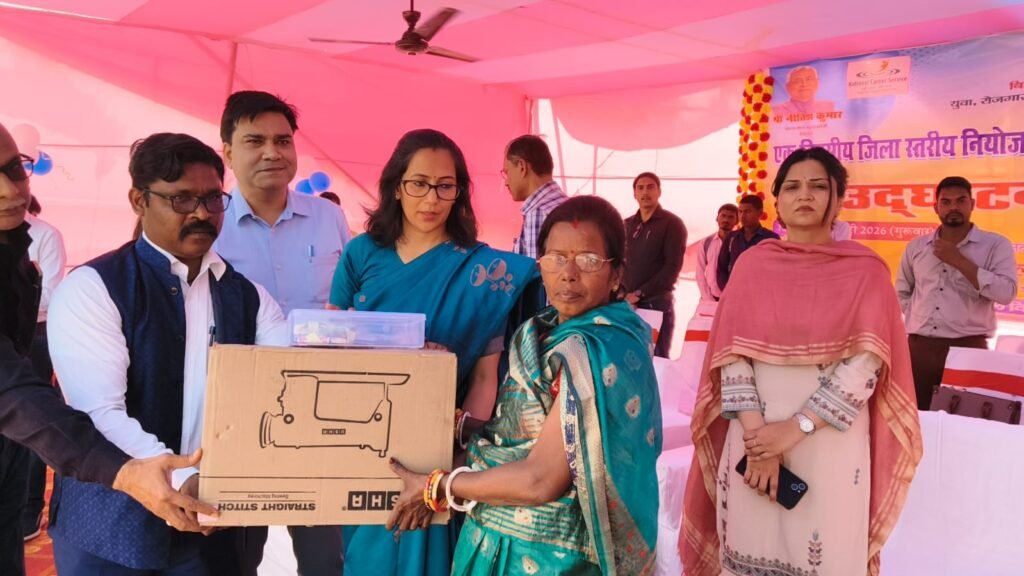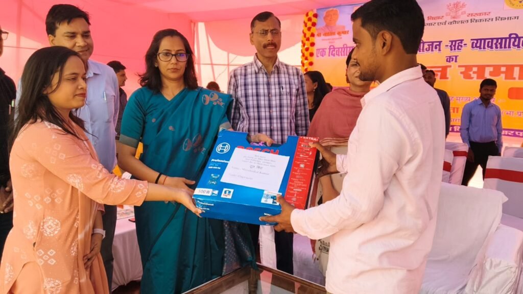 जिला पदाधिकारी ने उपस्थित सभी अभ्यर्थियों को उत्साहित करते हुए रोजगार एवं उद्यमिता के उपर प्रकाश डालते हुए बताया कि रोजगार एवं कौशल प्रशिक्षण से उनके भविष्य को एक बेहतर रूप मिल सकता है। उन्होंने मेला में भाग लेने वाले निजी क्षेत्र के प्रतिष्ठानों के विषय में जागरूक करते हुए युवाओं को अधिक से अधिक रोजगार अवसर प्राप्त करने हेतु मनोबल भी बढाया। इसके साथ ही स्वरोजगार के दिशा में सहयोग प्रदान करने हेतु युवा रोजगार एवं कौशल विकास विभाग द्वारा संचालित “नियोजन सेवा का विस्तार” योजना अंतर्गत कुल 13 प्रशिक्षित अभ्यर्थियों को इलेक्ट्रीशियन, फिटर, सिलाई मशीन इत्यादि वितरण किया एवं प्रतियोगिता परीक्षा की तैयारी करने वाले कुल 4 अभ्यर्थियों को स्टडी किट का वितरण किया इसके साथ ही कुशल युवा कार्यक्रम अंतर्गत प्रशिक्षण पूर्ण कर चुके कुल 50 अभ्यर्थियों को KYP सर्टिफिकेट भी वितरित किया