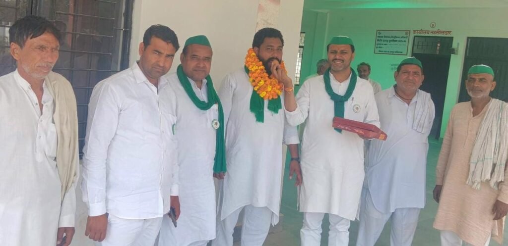 बुधवार को तहसील परिसर में भारतीय किसान यूनियन (टिकैत) के कार्यकर्ताओं की आयोजित बैठक में सुमित चौधरी को युवा तहसील अध्यक्ष बनाये जाने पर हर्ष व्यक्त किया गया है और संगठन के पदाधिकारियों व कार्यकर्ताओं ने उन्हें शुभकामनाएं दी हैं। कार्यक्रताओं ने आशा व्यक्त की है कि हाइकमान ने जो जिम्मेदारी सुमित चौधरी को सौंपी है वह अपने दायित्वों का निर्वहन करते हुए किसानों की समस्याओं को मजबूती से उठाते हुए संगठन के हितों की रक्षा करते हुए संगठन को ओर मजबूत बनाने का काम करेंगे। इस अवसर पर संगठन को मजबूत बनाने व किसानों की हितों की लडाई को ओर तेज करने पर भी चर्चा की गई। इस दौरान मंडल महासचिव पुनीत चौधरी, तहसील अध्यक्ष ग़ालिब प्रधान, ब्लाक अध्यक्ष धर्मवीर चौधरी, सिकन्दर चौधरी, अंकुर चौधरी, अमरीश चौधरी आदि सहित काफी संख्या में कार्यकर्ता उपस्थित रहे।