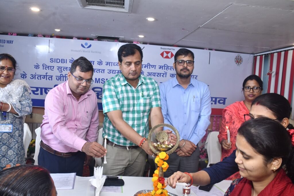 कार्यक्रम का शुभारम्भ डीआरडीए डायरेक्टर अभिजीत चौधरी, डीपीओ मनरेगा अमित कुमार, डीडीएम नाबार्ड सुमन प्रभा , जीएमडीआईसी विजय कुमार और जीविका डीपीएम अनिशा के साथ ही दीदियों ने संयुक्त रूप से दीप प्रज्वलित कर किया. कार्यक्रम को संबोधित करते हुए डायरेक्टर अभिजीत चौधरी ने कहा कि जीविका के माध्यम से महिलाएं काफी सशक्त हो रही है. सिडबी द्वारा जो भी ऋण दिया जा रहा है इससे व्यवसाय भी उनका बढ़ रहा है. कार्यक्रम के दौरान डीडीएम ने नाबार्ड से जुड़ी योजनाओं की जानकारी दी वहीं उद्योग विभाग के योजनाओं के बारे में जीएम डीआइसी ने जानकारी दी. कार्यक्रम में मौजूद अतिथियों का स्वागत सहदेव कुमार ने किया. कार्यक्रम में अच्छा कार्य करने वाली दीदियों को सम्मानित भी किया गया. सिडबी द्वारा अतिथियों के माध्यम से तीन दीदियों क़ो व्यवसाय के लिए दो लाख रु का सांकेतिक चेक भी प्रदान किया गया.