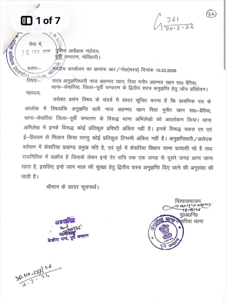 मामला केसरिया प्रखंड की प्रमुख के पति नाज अहमद खान के दूसरे आर्म्स लाइसेंस के आवेदन से जुड़ा है। पुलिस रिकॉर्ड के अनुसार, नाज अहमद खान एक कुख्यात अपराधी है और उस पर पूर्व से एक दर्जन से अधिक संगीन आपराधिक मामले दर्ज हैं। आर्म्स लाइसेंस प्राप्त करने के लिए आरोपी ने चौकीदार मनोज सिंह के साथ मिलीभगत की। चौकीदार ने पद का दुरुपयोग करते हुए थानेदार और इंस्पेक्टर के फर्जी हस्ताक्षर किए और रिपोर्ट में नाज अहमद खान का आपराधिक इतिहास ‘शून्य’ दिखाते हुए फाइल जिला मुख्यालय भेज दी।