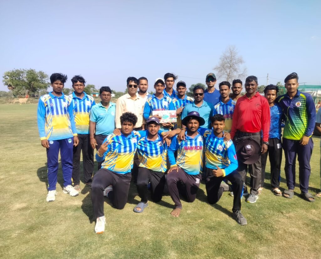 नवादा की तरफ से गेंदबाजी करते हुए यीशु कुमार ने शानदार पांच विकेट झटके वही सचिन ने तीन एवं अभिनव ने दो खिलाड़ियों को आउट किया।