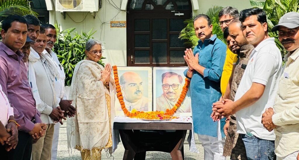 विधायक देवेंद्र नीम ने अंत्योदय के प्रणेता पंडित दीनदयाल उपाध्याय एवं राष्ट्रवाद के पुरोधा डॉ. श्यामा प्रसाद मुखर्जी के चित्रों पर पुष्पांजलि अर्पित की। उन्होंने कहा कि प्रधानमंत्री नरेंद्र मोदी और मुख्यमंत्री योगी आदित्यनाथ के नेतृत्व में ‘राष्ट्र प्रथम’ की भावना के साथ देश और प्रदेश निरंतर प्रगति के पथ पर अग्रसर है। स्थापना दिवस के कार्यक्रमों के साथ-साथ विधायक ने आवास पर ‘जनता दर्शन’ का आयोजन किया। इस दौरान क्षेत्र के विभिन्न हिस्सों से आए ग्रामीणों और स्थानीय निवासियों ने अपनी समस्याएं उनके समक्ष रखीं। विधायक देवेंद्र नीम ने समस्याओं को गंभीरता से सुना और संबंधित अधिकारियों को फोन कर निर्देशित किया। इसके पश्चात, विधायक देवेंद्र नीम रामपुर मनिहारान विधानसभा के ग्राम बहादरपुर पहुंचे, जहाँ उन्होंने महर्षि कश्यप जी की जयंती कार्यक्रम में मुख्य अतिथि के रूप में सहभागिता की। उन्होंने महर्षि कश्यप के चित्र पर नमन कर आशीर्वाद लिया इस अवसर पर कार्यकर्ता व स्थानीय ग्रामीण उपस्थित रहे।