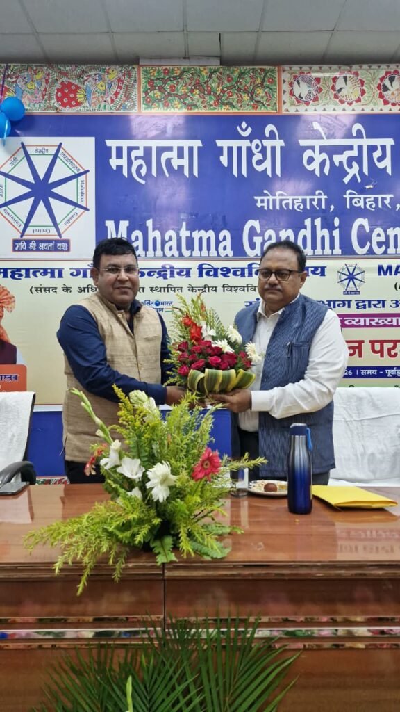 महात्मा गांधी केंद्रीय विश्वविद्यालय, मोतिहारी के संस्कृत विभाग द्वारा ‘स्कूली शिक्षा में भारतीय ज्ञान परम्परा का समावेशन’ विषय पर एक विशिष्ट व्याख्यान का आयोजन आचार्य बृहस्पति सभागार में गरिमामय वातावरण में सम्पन्न हुआ। कार्यक्रम का शुभारंभ दीप-प्रज्वलन एवं माँ सरस्वती तथा राष्ट्रपिता महात्मा गांधी की प्रतिमाओं पर पुष्पार्पण के साथ हुआ।