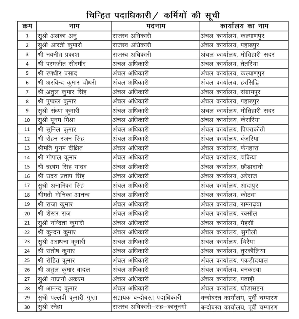 जनगणना 2027 का कार्य प्रगति पर है, इसको लेकर निदेशालय स्तर से विभिन्न प्रकार के विभागीय पत्र समय-समय पर जारी किए गए हैं। जिसका अनुपालन सभी पदाधिकारियों व कर्मियों को करना पड़ता है। इस क्रम में प्रधान सचिव सह राज्य नोडल पदाधिकारी जनगणना ,पटना सीके अनिल द्वारा जिले के अंतर्गत कार्यरत्त 30 पदाधिकारी व कर्मियों के विरुद्ध जनगणना अधिनियम ,1948 की धारा -11 के तहत शास्ति अधिरोपित किया गया है। जिसकी जानकारी विज्ञप्ति संख्या -001744 (राजस्व) 2026 -27 ,दिनांक 23/04/ 2026 के माध्यम से दी गई है। बता दें कि जिले में जनगणना 2027 के अंतर्गत स्व गणना बीते 17 अप्रैल 26 से 01 मई 26 के बीच एवं प्रथम चरण अंतर्गत 02 मई से 31 मई 2026 तक आवास सूचीकरण का कार्य निर्धारित किया गया है। जिलांतर्गत इस कार्य में सहयोग नहीं करने या समय पर कार्य पूरा नहीं करने पर इसे कार्य में बाधा मानते हुए कर्तव्य हीनता के आरोप में 30 पदाधिकारी व कर्मियों के विरुद्ध एक हजार रुपये अर्थदण्ड (शास्ति) अधिरोपित करने का आदेश पूर्वी चंपारण के जिला दंडाधिकारी सह प्रधान जनगणना अधिकारी ने दिया है। इस बात कि जानकारी नोडल पदाधिकारी जनगणना कोषांग सह जिला सांख्यकी पदाधिकारी अवधेश कुमार श्रीवास्तव ने देते हुए बताया कि उक्त पत्रावलोक में जिले के चिन्हित पदाधिकारी व कर्मियों के विरुद्ध एक हजार रुपये का अर्थदण्ड( शास्ति) अधिरोपित कर उच्चधिकारी को प्रतिवेदित करने की प्रक्रिया प्रारंभ कर दी गई है। साथ ही जनगणना कार्य 2027 से जुड़े सभी पदाधिकारियों व कर्मियों से निदेशालय के निर्देशानुरूप बेहतर कार्य करने का निर्देश दिया है।